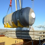 The new pressurized steel evaporator tanks, which arrived at JAXPORT from Zhangjiagang, China, are 45-feet in length, 20-feet in diameter, and weigh 220,000 pounds each.