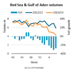 Cargo volumes to and from ports in the Gulf of Aden and Red Sea during the first seven months of 2024 declined 21 percent compared to the year-earlier period, according to BIMCO the international association for shipowners.“The number of ships arriving in these ports significantly declined as merchant shipping increasingly ...