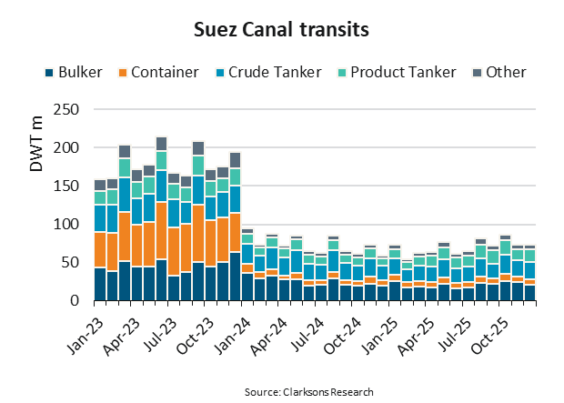 Suez Transits Remain Down Despite No Attacks