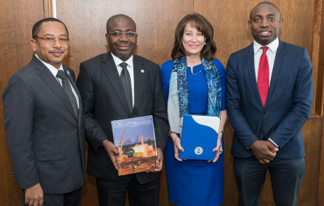 Left to right: Regis Laccruche, Commander of the Ports of Gabon, Rigobert Ikambouayat, Chairman of the Ports of Gabon, Port of Houston Authority Chairman Janiece Longoria, Raoul Keddy, President of the America-Africa Chamber of Commerce and Board Member, City of Houston Mayor’s International Trade & Development Council (Photo: Business Wire)
