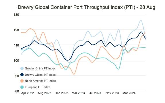 Drewry, the maritime research consultancy, said its Global Container Port Throughput Index increased 3.3 percent month over month from May to June, improving 5.5 percent year over year to 118.5 points.The rolling 12-month average growth rate for global port handling also rose to 4.4 percent in June. According to Drewry’s Nowcast model, which considers the capacity and duration of container vessel calls at more than 190 ports, the index is ...