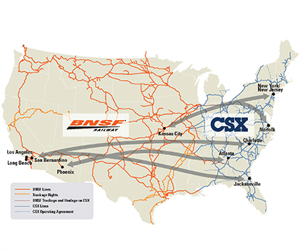 CSX, BNSF Join NS-UP in Transcontinental Tie-up