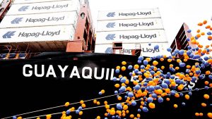 “This naming ceremony is a symbol of the close connection to our home port, which is simultaneously the home port of the ‘Guayaquil Express’,” says Michael Behrendt, the Chairman of the Supervisory Board of Hapag-Lloyd AG. “For us, the ‘Guayaquil Express’ is a ‘smart ship’,” adds Rolf Habben Jansen, CEO of Hapag-Lloyd. “With it, we are setting an example of how we are efficiently positioning ourselves during these economically challenging times for our industry.”