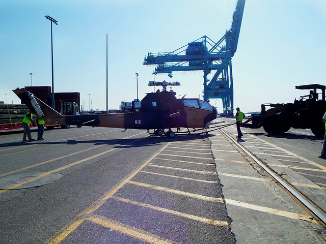 The helicopters, which arrived at JAXPORT from the Middle East, are owned by a U.S. Government ally and are being trucked to a manufacturing facility in the U.S. Southeast for refurbishing. Each helicopter will receive $10 million in upgrades before being shipped back to the Middle East through JAXPORT.