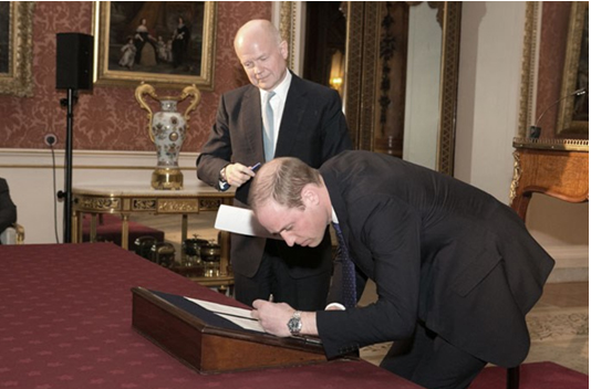 Prince William and Lord Hague of Richmond sign the Declaration.