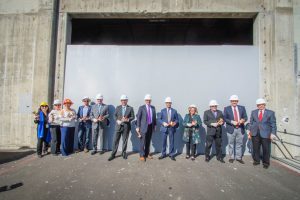 [ February 15, 2018 // Gary G Burrows ]The Port of San Diego celebrated the start of a $24 million public works project that will modernize its Tenth Avenue Marine Terminal. On January 23, 2018, Chairman Rafael Castellanos was joined by U.S. Representative Scott Peters, City of San Diego Mayor Kevin L. Faulconer, City of San Diego Councilmember David Alvarez, Port Vice Chairman Garry Bonelli, Port Commissioners Robert “Dukie” Valderrama and Marshall Merrifield, International Longshore & Warehouse Union Local 29 President Anthony Soniga and Working Waterfront Group Co-Chair Dennis Dubard, along with other officials including Port Chief Executive Officer Randa Coniglio in a special event that included tearing down a wall of a warehouse destined to be demolished.