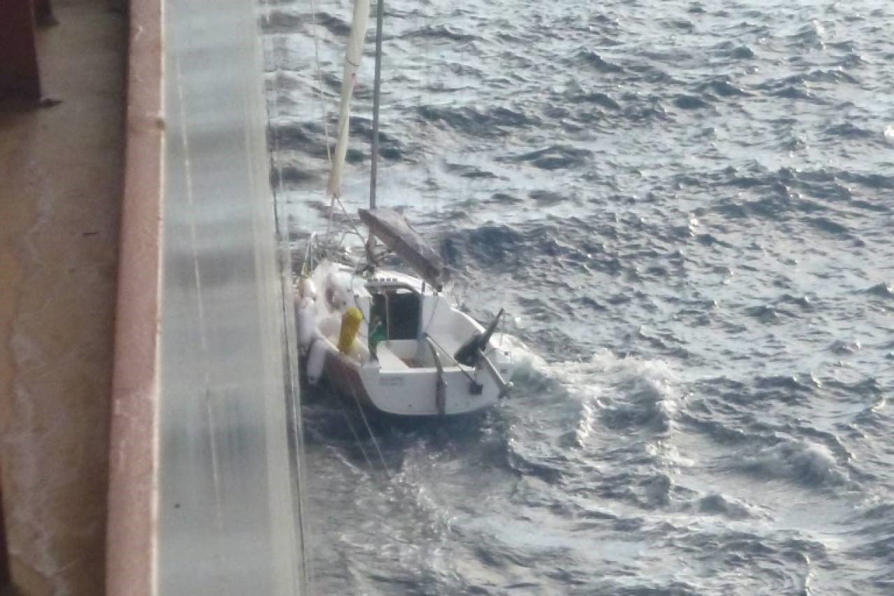 [ July 21, 2016 // Gary G Burrows ]When the two transmitted their distress call on July 4, the “Hamburg Express”, flagship of Hapag-Lloyd’s fleet, was among a number of ships that happened to be in the area. Over two hours after the distress call went out, the second officer spotted the small yacht as it was pitching and rolling under sail among 2.5-meter-high waves.