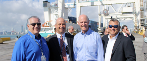 [ February 24, 2017 // Gary G Burrows ]In an address to the media, various state and local elected officials gathered at PortMiami on Feb. 9 to discuss economic development and job creation in Florida. In attendance, along with Governor Rick Scott and Miami-Dade Mayor Carlos Gimenez, was PortMiami Director Juan Kuryla who formally thanked Seaboard Marine for our part in contributing to the economic and employment growth in South Florida. Kuryla specifically noted Seaboard Marine’s 30-year partnership with PortMiami producing significant investments resulting in improving business opportunities throughout the community.