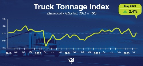 American Trucking Associations’ advanced seasonally adjusted (SA) For-Hire Truck Tonnage Index rose 2.4% in May after decreasing 1.7% in April. In May, the index equaled 115.4 (2015=100) compared with 112.7 in April.