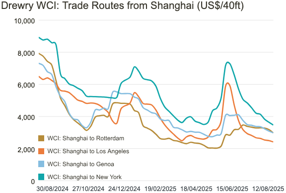 The unpredictability began, Drewry said, after U.S. tariffs were announced in April, which caused rates to surge from May through early June. Subsequently, the market saw a heavy decline until mid-July, after which the downward trend lost ...