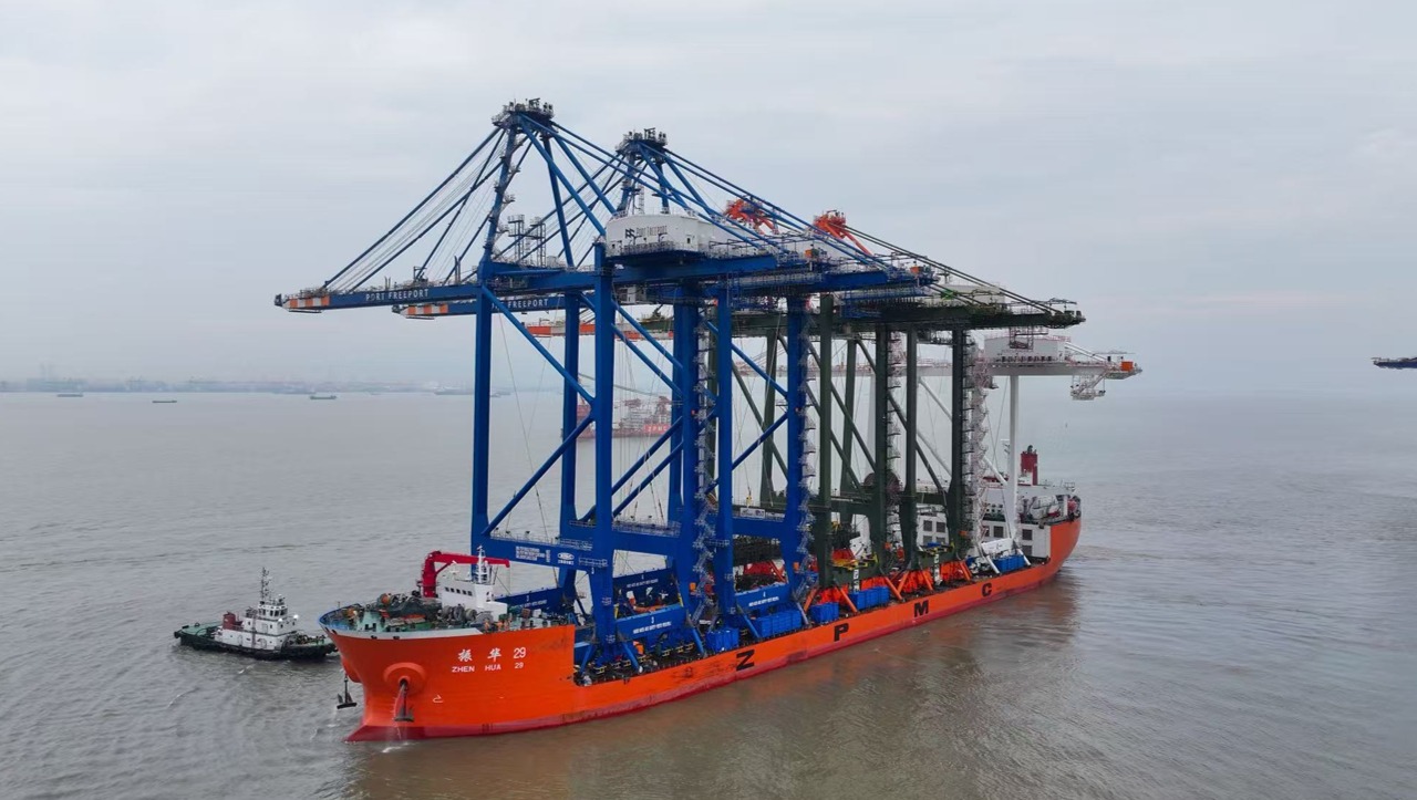 Transported fully erected about the heavy-lift vessel Zhen Hua 29, the cranes were carefully offloaded and secured to the docks. Following installation and testing this fall, the new equipment will be placed in service, dramatically expanding the port's capacity for handling containers.