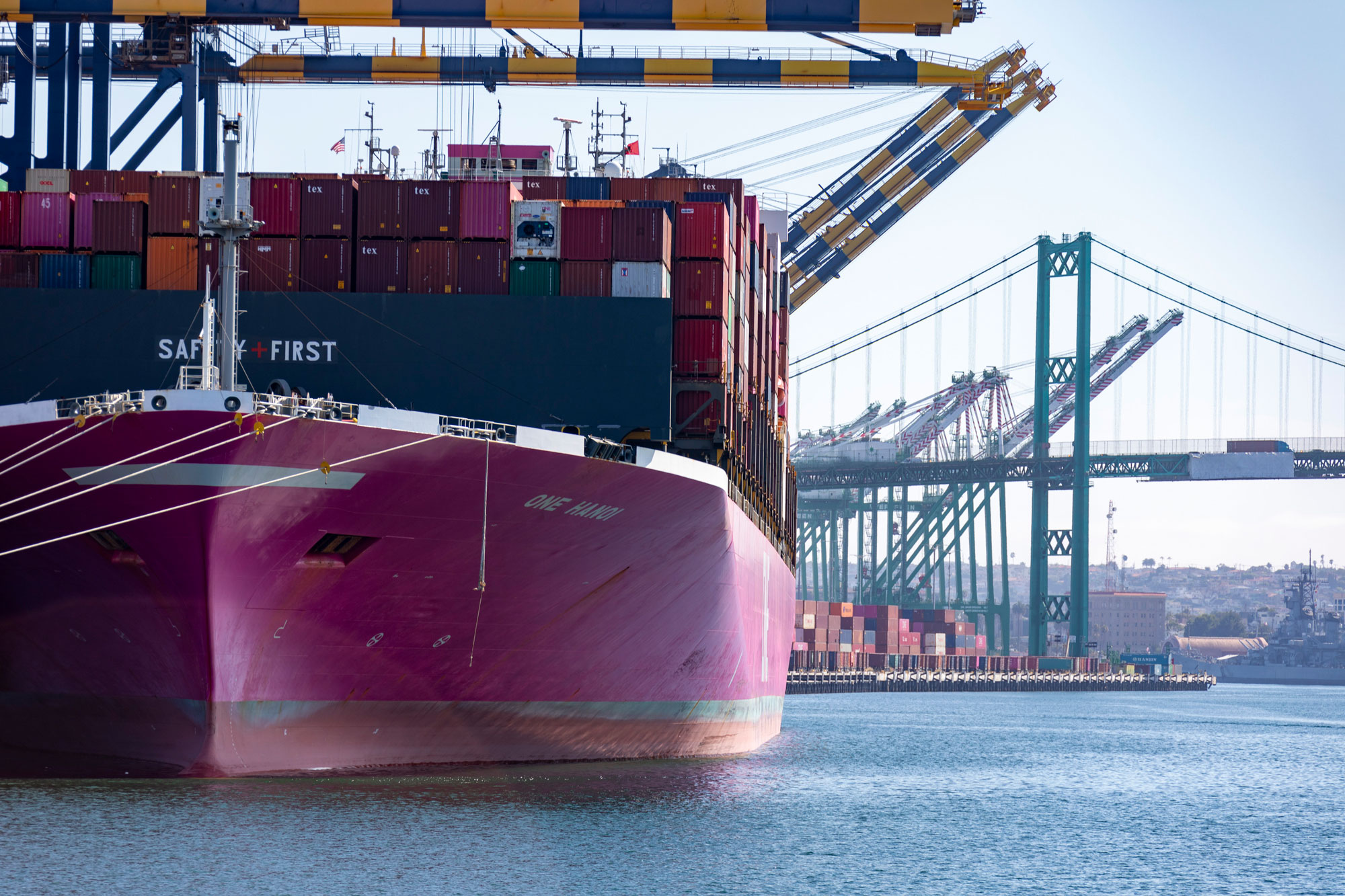 Containership ONE Hanoi berthed at the Port of LA. PHOTO: Port of Los Angeles