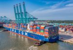 CMA CGM Centaurus made its first US East Coast on June 17 at the Port of Virginia as part of CMA CGM’s Chesapeake Bay Express (CBX) service. (POV photo.)